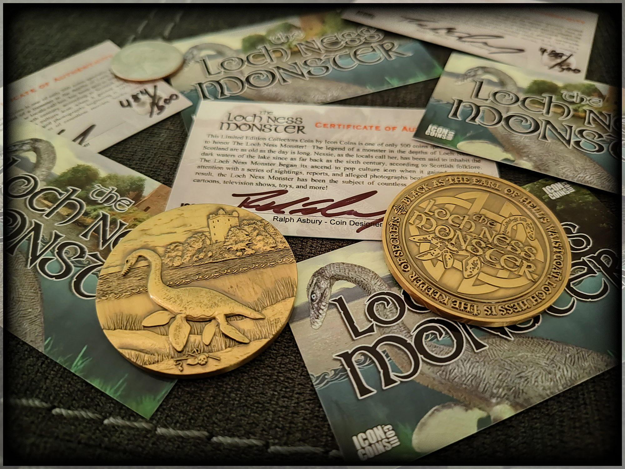 Icon Coins presents The Loch Ness Monster! The legend of a monster in the depths of Loch Ness in Scotland are as old as the day is long. Nessie, as the locals call her, has been said to inhabit the dark waters of the lake since as far back as the sixth century according to Scottish folklore. The Loch Ness Monster began its ascend to pop culture icon when it gained worldwide attention with a series of sighting, reports, and alleged photographs beginning in 1933. As a result, the Loch Ness Monster has been the subject of countless movies, books, comics, cartoons, television shows, toys, and more!